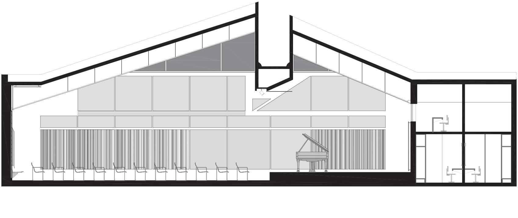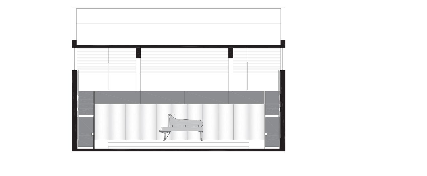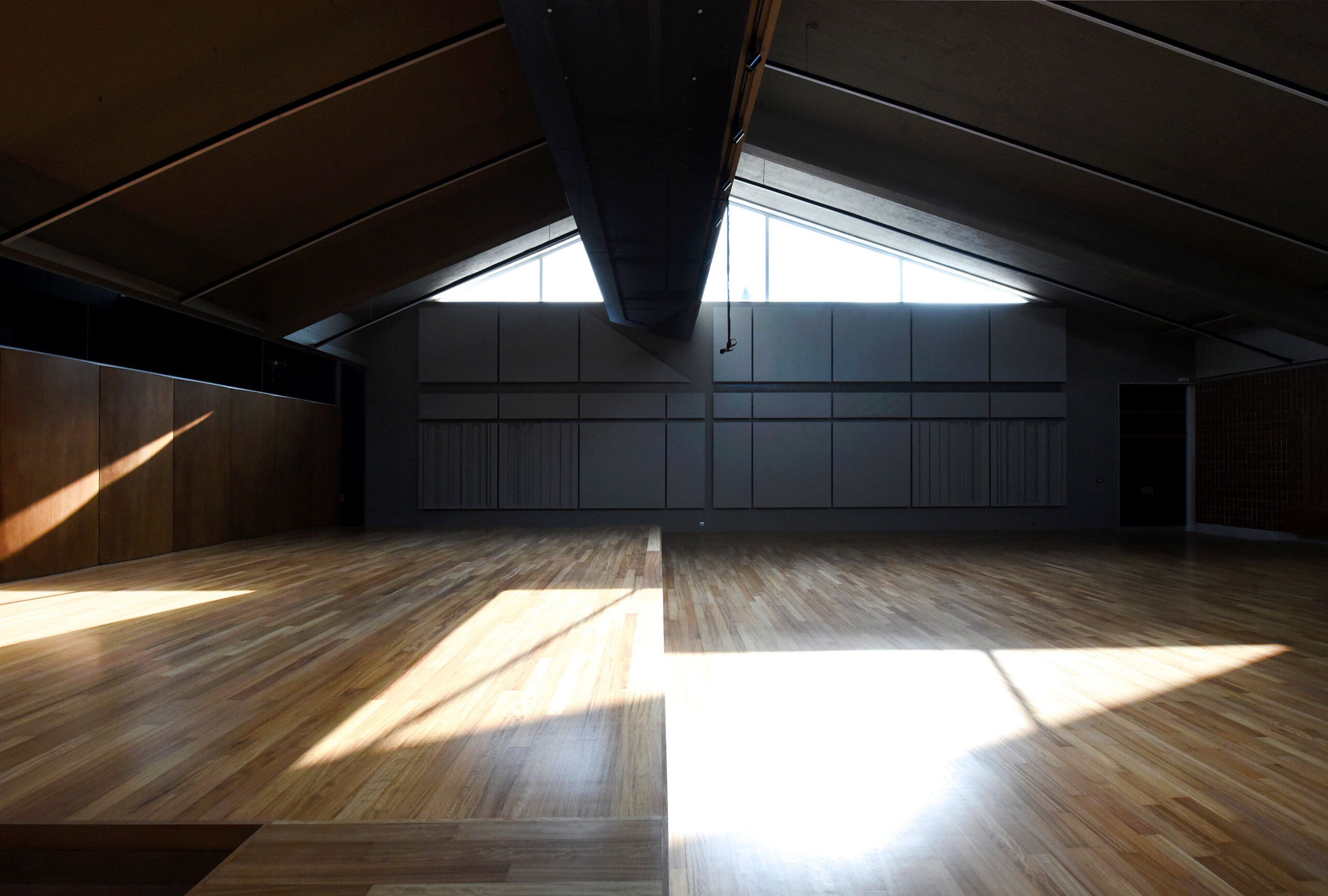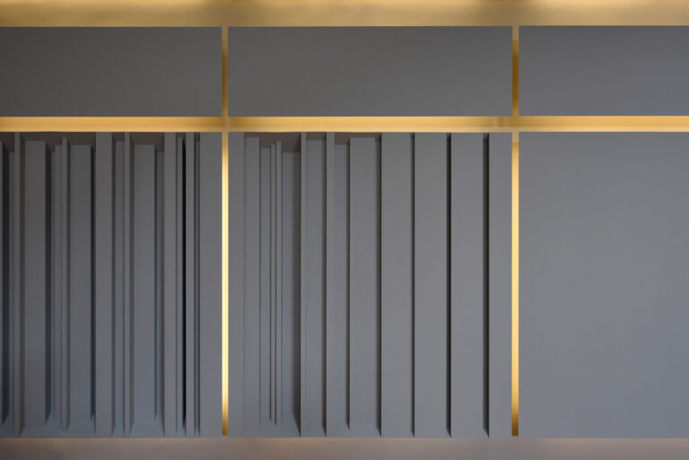 The original execution drawings revealed a masterful arrangement of acoustic panels along the hall’s long sides. Their asymmetry—responding to the placement of the main entrance and intersecting the transverse beam differently—was a key part of Despotopoulos’ design logic. Transforming the hall into a modern music venue required that these panels meet contemporary standards of sound reflection, absorption, and diffusion, while preserving the integrity of the original vision.